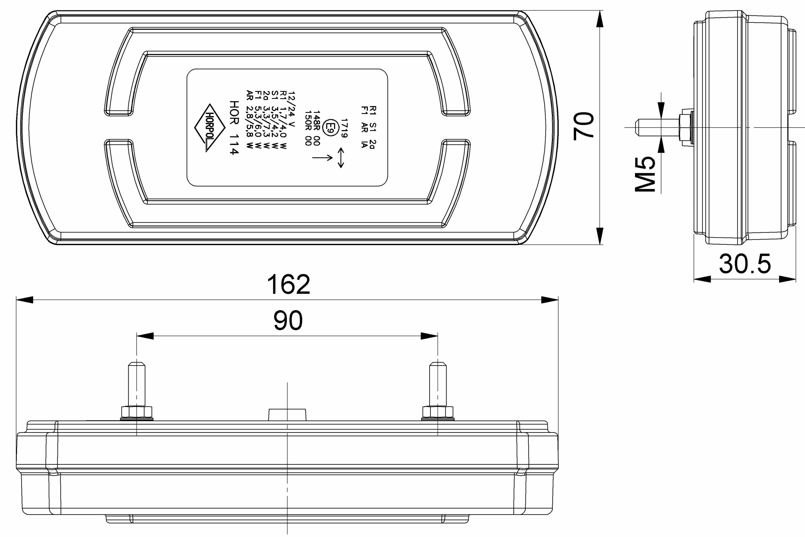 – feu de position arrière – 1,7/4 W;